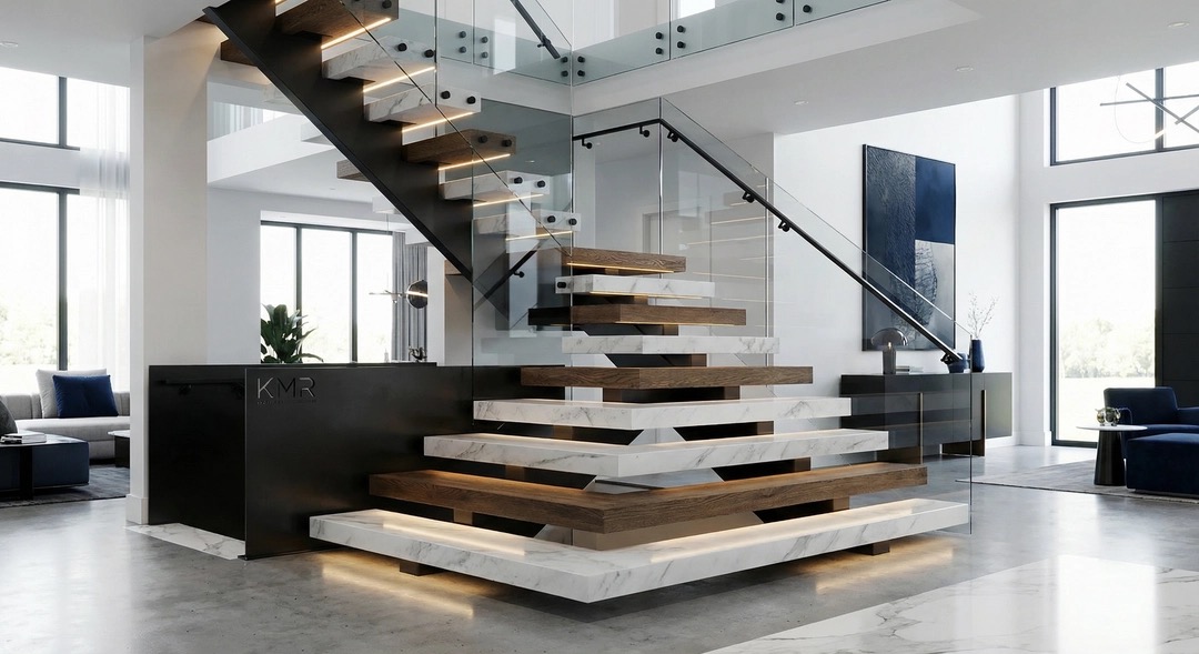 Yes — KMR operates as a full design-build contractor for staircase projects. We manage concept development, Viewrail system selection, material sourcing, engineering coordination, permit acquisition, installation, and final inspection under one roof. Homeowners and commercial clients work with a single point of contact throughout the entire process.