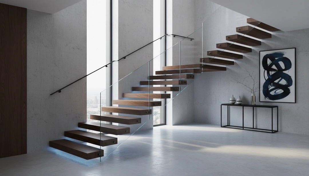 • Custom floating staircases—available in straight, L-shaped, and U-shaped configurations—precision-engineered for structural integrity and aesthetic impact.